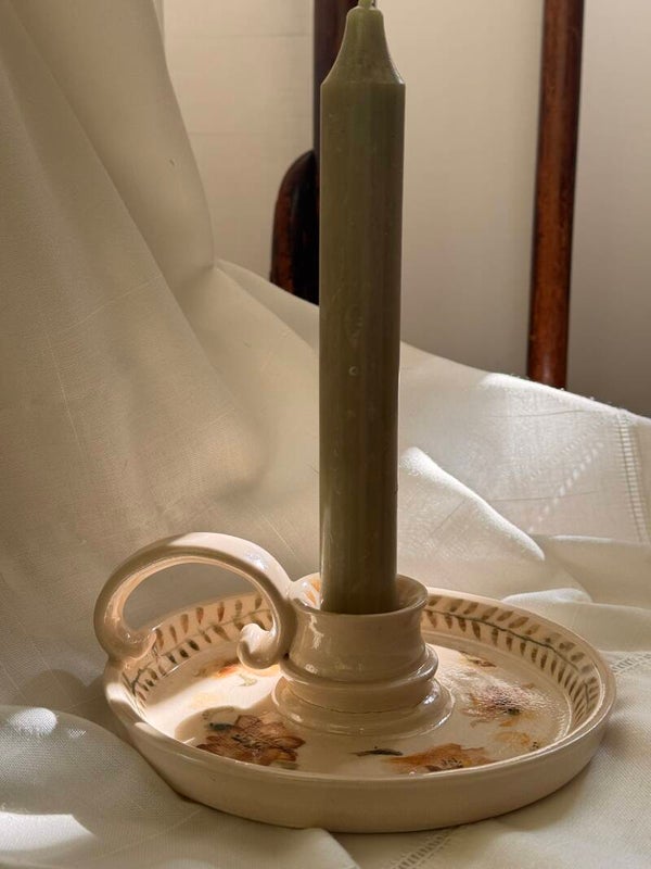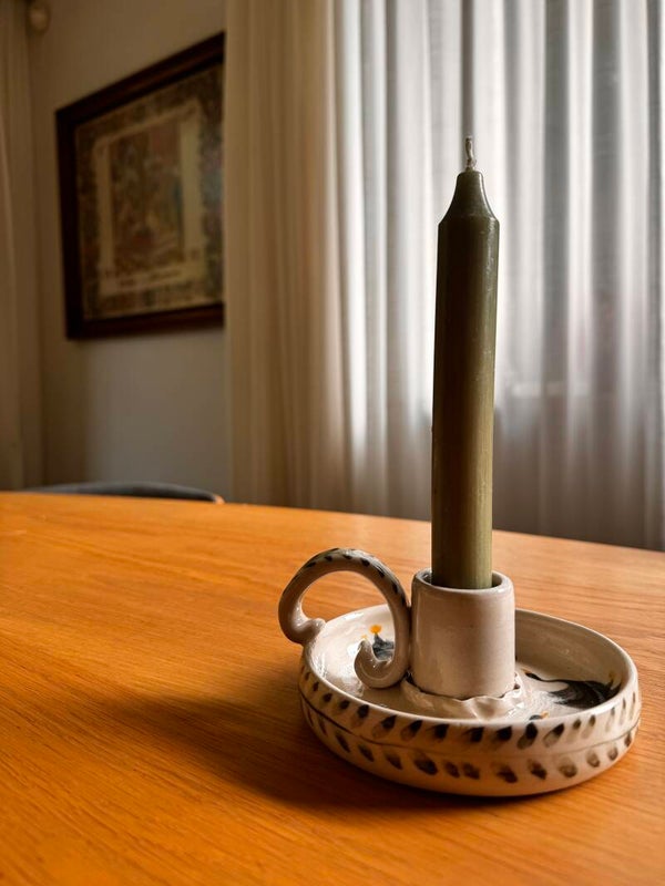 Breng warmte en elegantie in huis met deze handgemaakte keramieken kaarsenhouders, met liefde gevormd en met de hand beschilderd. Elk stuk is uniek en straalt een klassieke charme uit dankzij de verfijnde details en het ambachtelijke karakter.