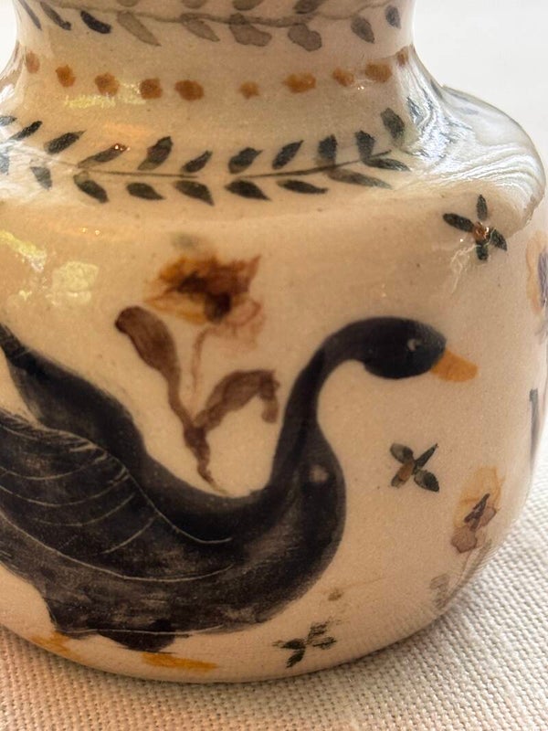 Het ontwerp is rijk aan detail, met een sfeervol tafereel van een zwaan, bruine herfstbladeren of vogeltjes. De warme najaarskleuren - zoals diepbruin, okergeel en roesttinten - maken deze vaasjes perfect voor het seizoen. De klassieke, bijna sprookjesachtige stijl zorgt voor een nostalgisch accent in elk interieur.